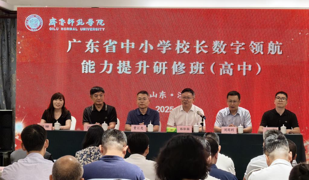 6月23日,由齐鲁师范学院承办的2025年广东省中小学校长数字领航能力提升研修班在山东济南举办开班仪式。学校党委林松柏书记出席会议并讲话。