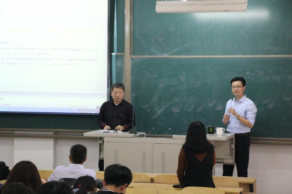 10月8日下午两点,在一教A111讲座准时开始。首先,由教师教育学院副院长魏祥主持,在热烈的掌声后,韩教授开始了今天的讲座,韩教授旁征博引,用网上近几年引起广泛关注的焦点事件进行讲解,具体详细地讲述了网络暴力、网络色情和网络舆论等对个人心理潜移默化的影响及其对具体社会行为的负面作用。通过一般学习模型,社会认知理论等心理学知识对社会现象进行分析,让同学们自主思考“为什么”、思考“怎么办”,慢慢地引导同学们深入了解网络“负能量”信息的方方面面。韩教授在讲解结束后,又在场的观众们解答疑难问题,说的每一个词、每一句话直击问题的疑惑点,让提问者茅塞顿开。 最后,韩教授又对同学们关心的心理学专业问题、未来自身规划问题等一一作出解答,让同学们收获良多。