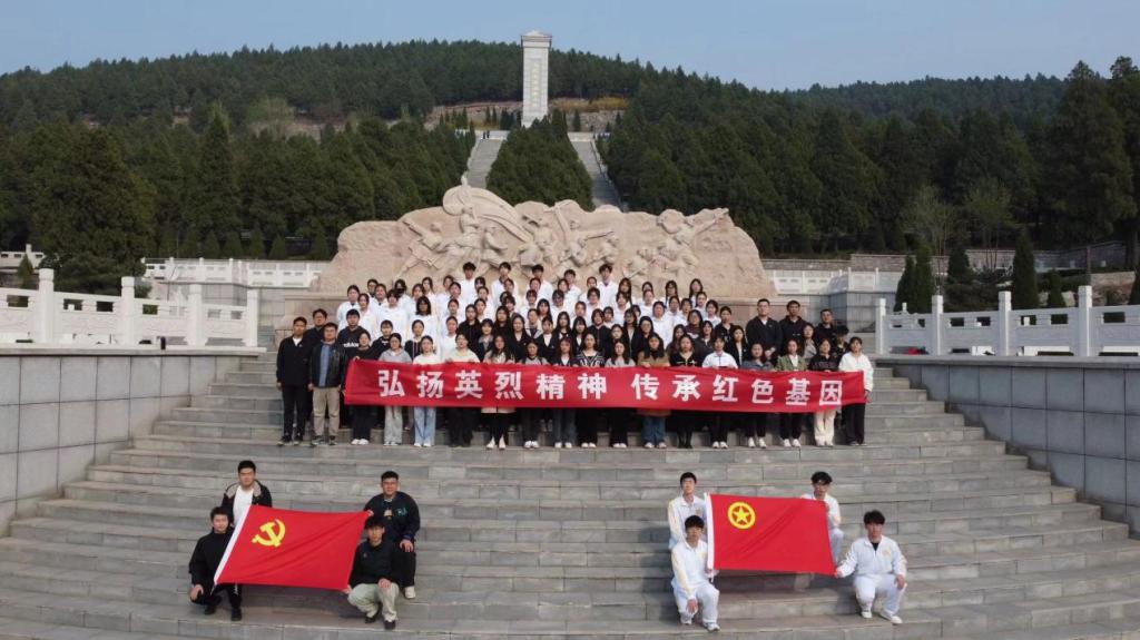 学生支部全体师生党员、共青团员在学生第二党支部书记王亚东的带领下,整齐列队在烈士纪念碑前,肃立默哀并鞠躬,向烈士们致以崇高的敬意和深切的缅怀之情。随后,学生支部全体师生党员和共青团员分别在烈士纪念碑前重温入党誓词和入团誓词,并向烈士们敬献鲜花。随后,大家瞻仰了烈士纪念碑和无名英雄碑,深情缅怀烈士们的英雄事迹。