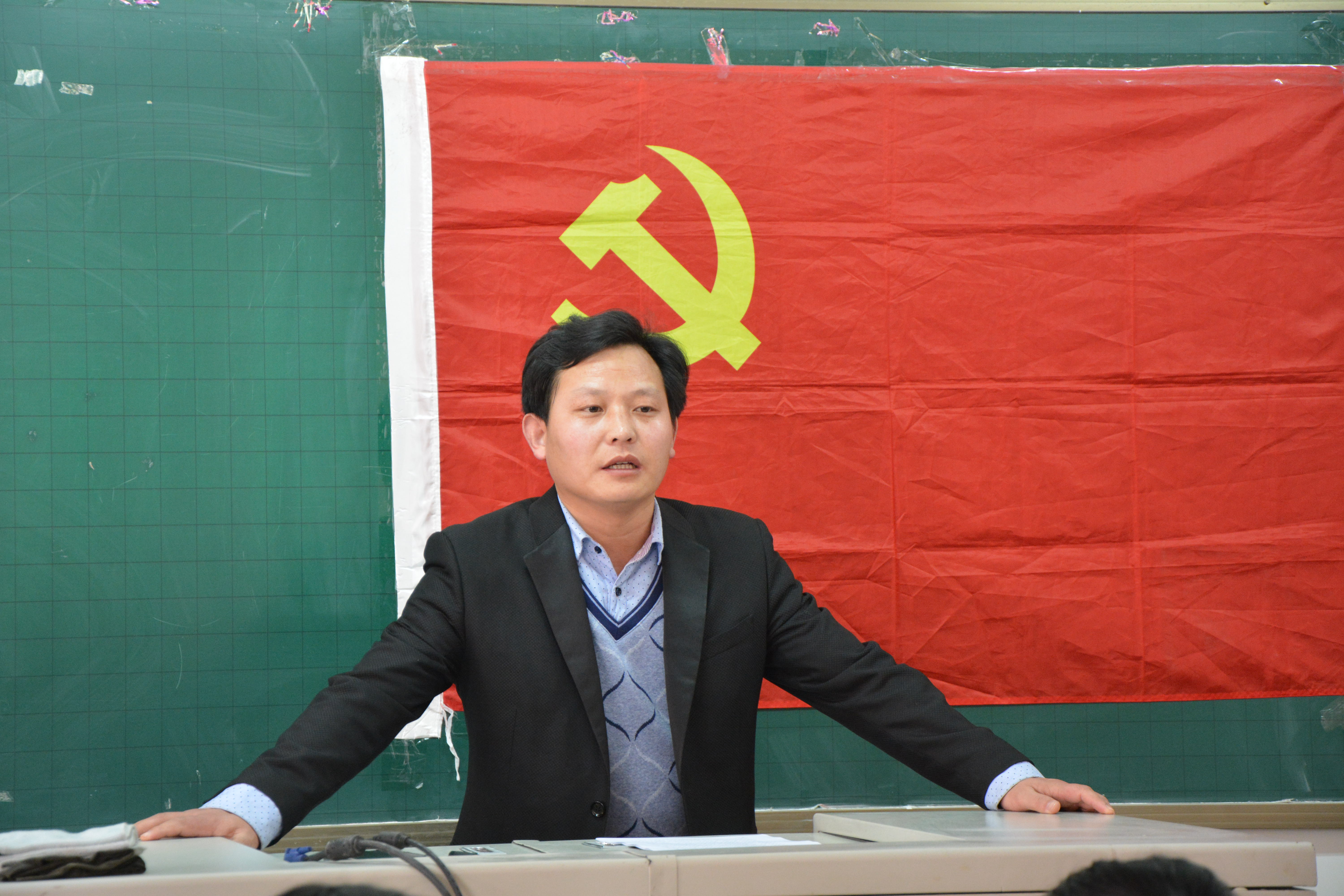 随后,学生党支部书记孙建凯结合当前中央关于“两学一做”的党员学习教育通知,就《如何做一名合格的共产党员》作了专题教育报告。他指出,党章是党的根本大法,是全党必须遵循的总规矩,党章党规是全体党员必须遵守的根本行为规范,全体党员同志必须要学习党章,尊崇党章,遵守党规;习近平总书记系列重要讲话,紧扣中国特色社会主义伟大实践,涵盖我们党治国理政的各个方面,思想性、理论性、系统性强,富含很多新思想、新观点、新论断,全体党员同志必须认真学习,深刻领会,准确把握,并注重贯彻于个人工作学习实践之中。他认为,合格党员是“做”出来的,努力做到以下七点才可能做一名合格的共产党员。一是牢记身份角色,强化党员意识;二是加强党性修养,提高自身素质;三是严格行为规范,维护党纪国法;四是认清重大问题,坚定理想信念;五是树立正确“三观”,践行党的宗旨;六是联系岗位职责,发挥模范作用;七是发扬优良作风,永葆政治本色。最后他总结说:“做合格党员,就是要坚定信念、履行义务、践行宗旨、发挥作用。他希望党员同志铭记面对党旗所作出的庄重承诺,继续加强学习,着力解决自身存在的问题,进一步增强“四个意识”,以实际行动做一名合格党员,并在做合格党员的基础上,努力向优秀党员看齐、奋进。