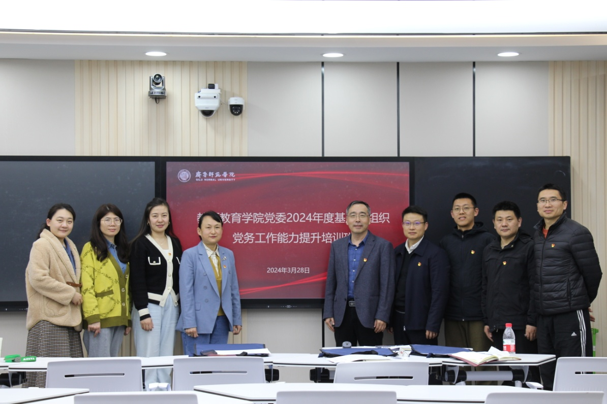 为进一步加强基层党组织建设,提升基层党组织党务工作能力,3月28日,教师教育学院党委在二教B108举办2024年度党支部书记党务工作能力提升培训班开班仪式。学院党委书记姜东菲,院长、党委副书记毕诗文,党委副书记栾毅之以及所属7个党支部的7名支部书记参加,开班仪式由姜东菲主持。