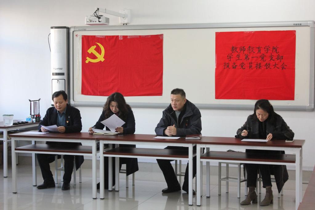 12月3日,我院学生第一党支部和第二党支部分别在一教A308和一教B106会议室召开党支部大会,讨论关于接收常轩语等37名同志为预备党员的问题。图书馆党总支书记王允华,马克思主义学院团总支书记院田田,经济与管理学院团总支书记高超,音乐学院团总支书记赵宝丽,信息科学与工程学院团总支副书记李绚等5位同志作为组织部指派组织员出席会议。我院党总支书记陈宝金,学生第一、二党支部全体师生党员参加大会。会议分别由孙建凯和郭飞主持。