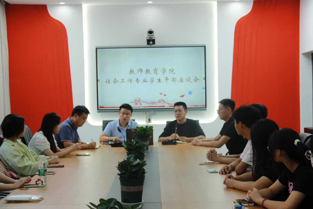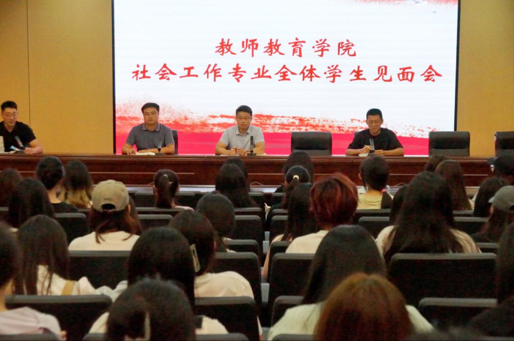 为更好地帮助转入教师教育学院的学生尽快适应学院调整、融入学院氛围、开启新的学习阶段,9月14日下午,教师教育学院分别在学院会议室和学校第二学术报告厅召开了社会工作专业学生干部座谈会和社会工作专业全体学生见面会。学院党委副书记栾毅之、团总支书记李炜琛、副书记王亚东、辅导员柴通参加会议。