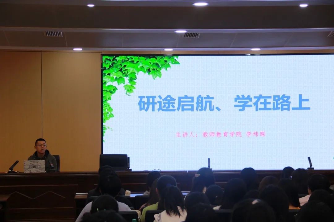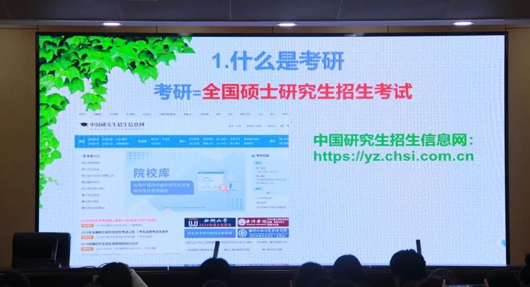 活动伊始,李炜琛书记立足我院专业特点并结合新生反馈的实际问题,从自身经验出发,围绕“考研是什么”、“考研考什么”、“考研该怎样做”三个问题展开介绍。通过列举历年考研数据为同学们扫清信息差,并建议同学们结合自身需求和现实条件进行报考,选择一条最适合自己的学习道路,认清形势,量力而行。