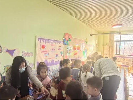 随后,志愿者王妍洁分发印着安全标识的彩色卡片,志愿者王妍洁与李姝涵穿梭孩子们其间,耐心引导大家认识卡片上的安全标识,逐字逐句教小朋友们朗读并理解安全标语,进一步加深孩子们对安全知识的记忆。