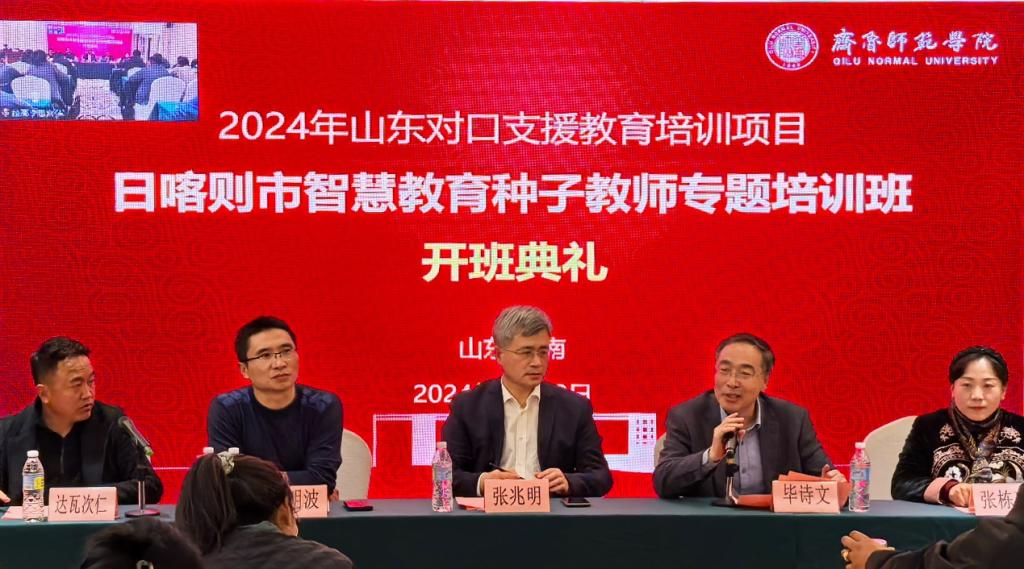 11月9日,由山东省教育厅、日喀则市教育局主办,齐鲁师范学院承办的2024年山东对口支援教育培训项目日喀则市智慧教育种子教师专题培训班顺利开班。齐鲁师范学院副校长张兆明,齐鲁师范学院教师教育学院院长毕诗文,山东省第十批援藏干部、日喀则市教育局党组成员、副局长矫立峰通过线上方式参与仪式,典礼由毕诗文院长主持。
