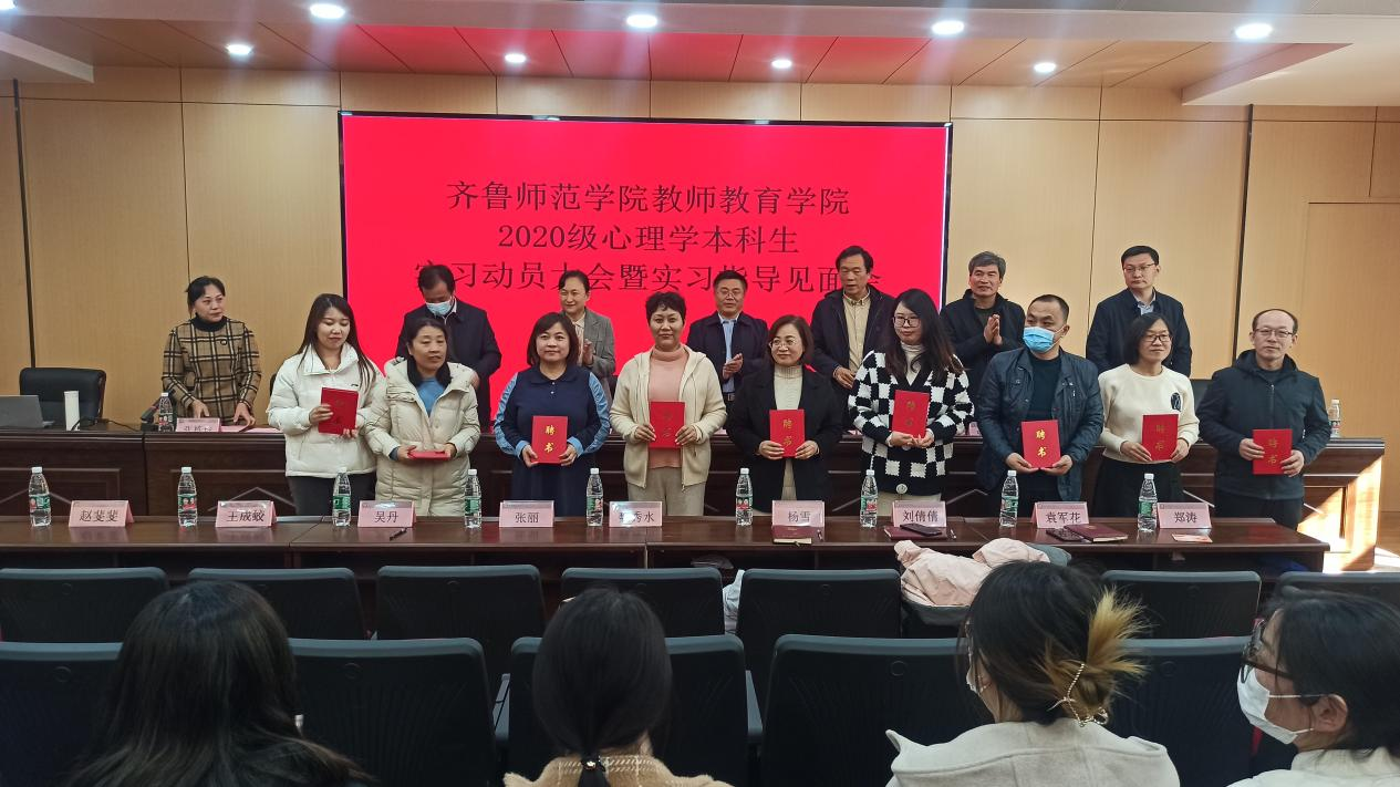 大会为章丘区实习指导教师颁发了教师教育学院实习指导教师聘书,为张宝义颁发教师教育学院特聘教授聘书。