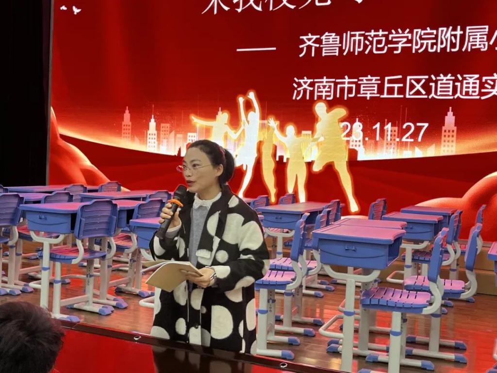 初相遇,初相语。欢迎会上,章丘区道通实验学校副校长陈磊磊代表学校全体师生欢迎见习生们的到来表示热烈欢迎。接着副校长耿才国为见习生们介绍学校的办学理念、教学组织形式、一日安排等,并鼓励大家与教师们建立亦师亦友的融洽氛围,在见习过程中认真学习,虚心向指导教师请教,常自省,多反思,了解学生,多多积累实践经验,充实自己的见习生活。随后教学管理部主任毛祥静强调两天的见习安排及注意事项。