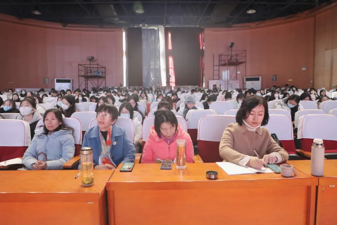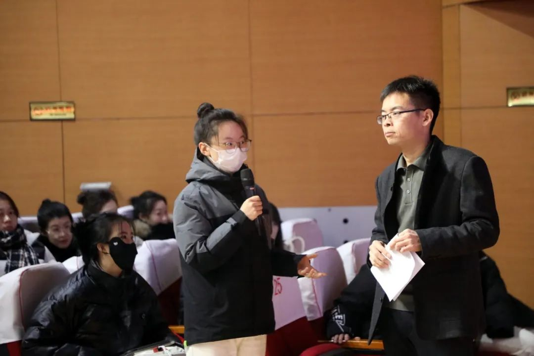 聚焦“多元思维课堂”实践研究,将课程改革的先进理念切实有效的转化为教师的教学行为,教学管理部主任王瑞玲从优化备课、创新教研、提升课堂、特色作业、多元评价五个方面向“未来教师”们做了《五步常规促思维教学落地》的学校教学工作汇报。