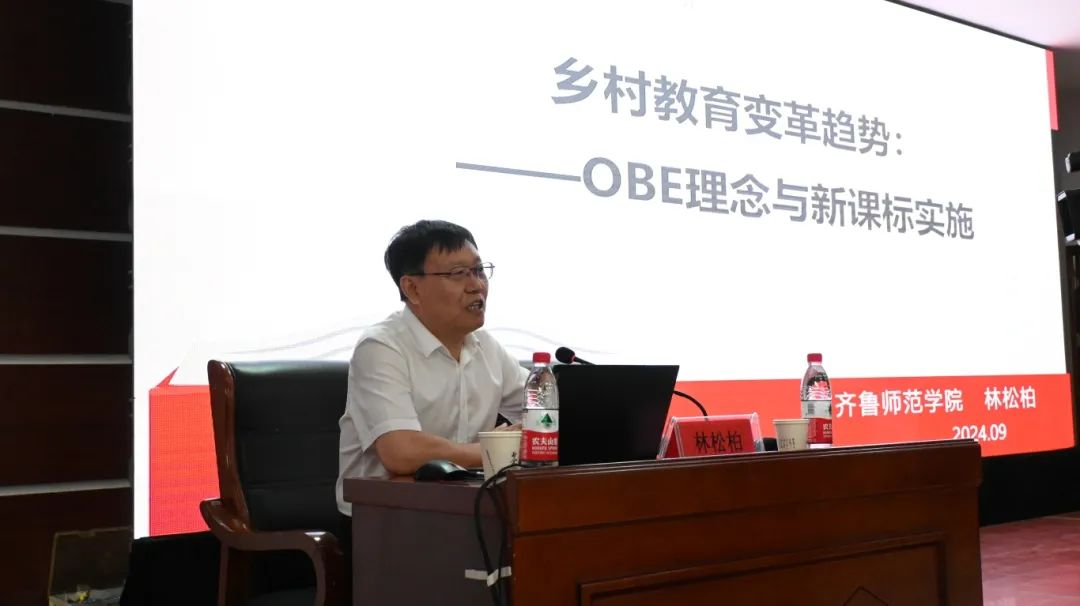 启动仪式后,林松柏专程赶到李村镇中心小学调研,并以《新时代乡村教育的OBE转型及新课改实施》为题,为牡丹区李村镇中小学幼儿园教师作了精彩讲座,通过丰富的数据和生动的案例,分享了国内外先进、科学的教育理念和教学方式。