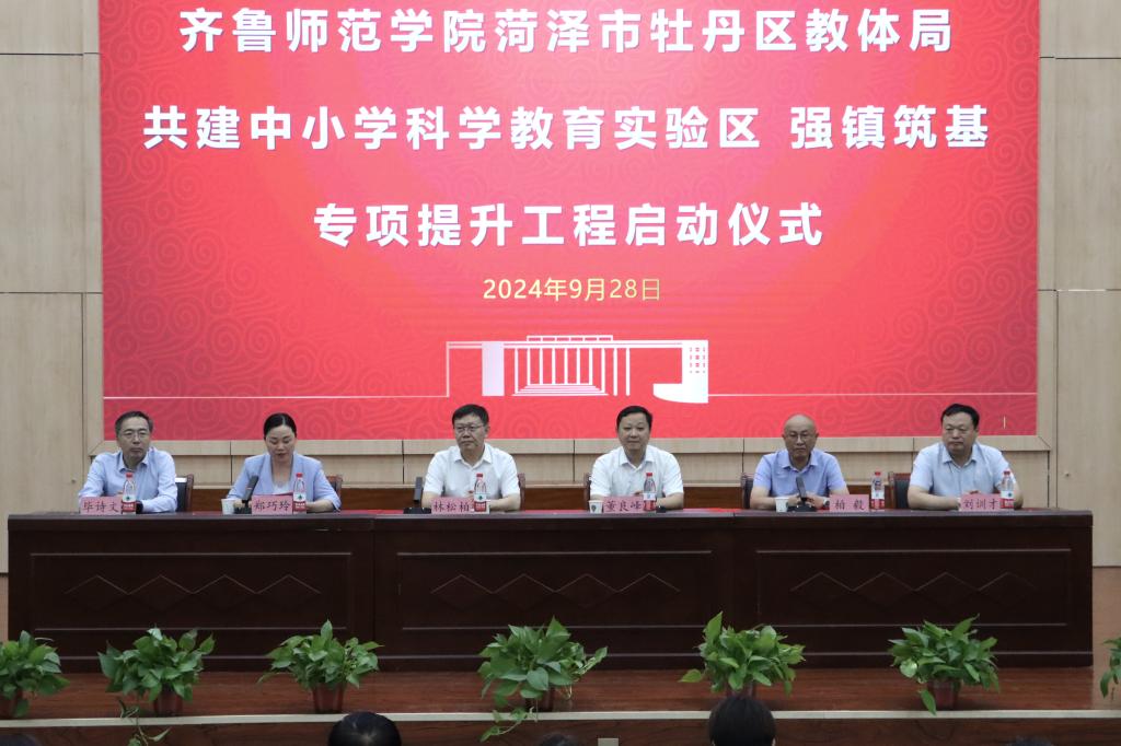 9月28日,齐鲁师范学院与菏泽市牡丹区教体局共建中小学科学教育实验区、强镇筑基专项提升工程启动仪式在菏泽市牡丹区顺利举行。